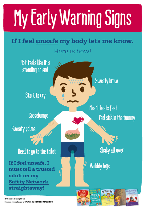 Children learn to notice early warning signs in their bodies (sometimes called “early warning signs”) such as feeling worried, tight, or uncomfortable.