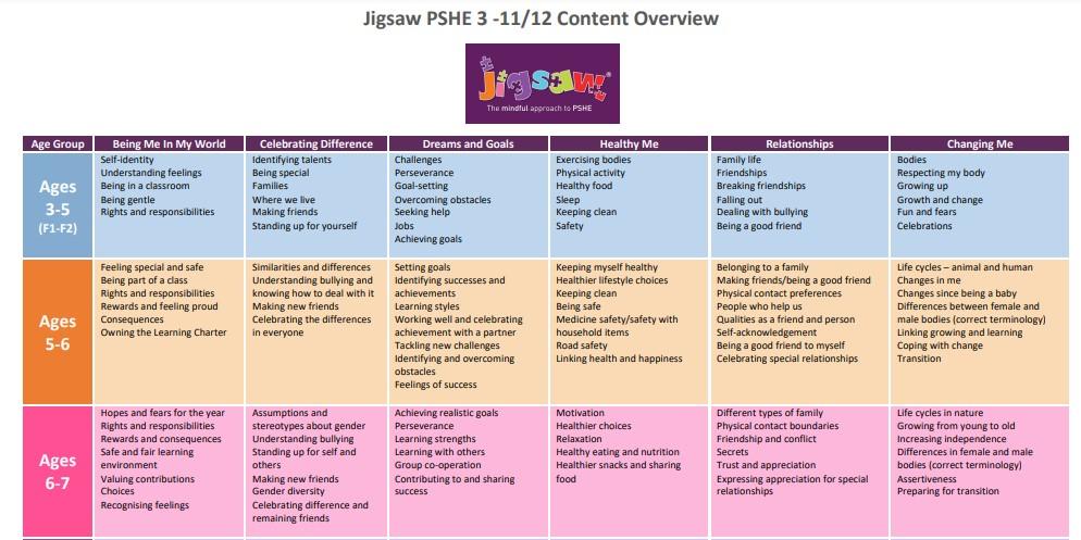 The information below details how Jigsaw covers the relationships education, relationships and sex education (RSE) and health education requirements as outlined by the Department for Education. The relevant policy can be fonud on the policies page of the website.